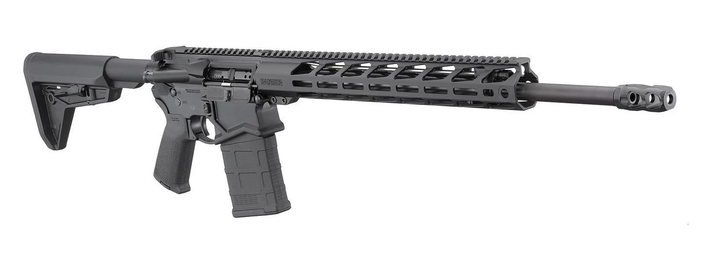 Ruger SFAR 7.62×51 Rifle 20″ Barrel 5611. This tactical rifle is chambered in 7.62x51NATO/ .308 and is packed with high quality features at an amazing price. Features include a 20″ cold hammer forged heavy profile barrel, mid length gas system and 7075 T6 forged upper receiver. Other key features include a 2 port muzzle brake, 15″ Lite handguard with Magpul MLOK, Ruger Elite trigger and a full length picatinny rail with ample space for your favorite optic or tactical accessory. This is one well appointed tactical or battle rifle that will be durable and stand the test of time. Comes with 1 20 round magazine.